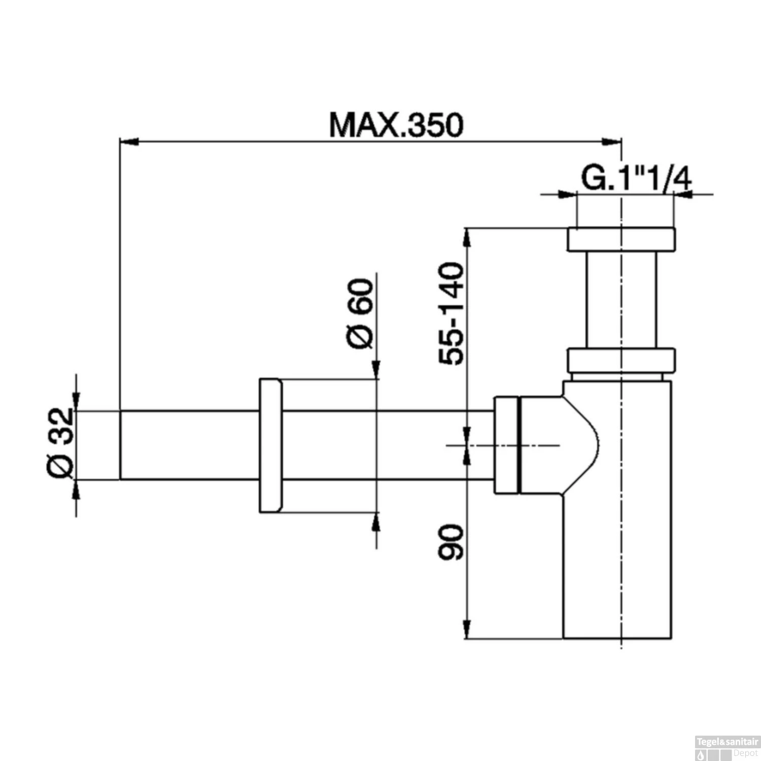 - – Afmeting afvoergat: 3,2 cm