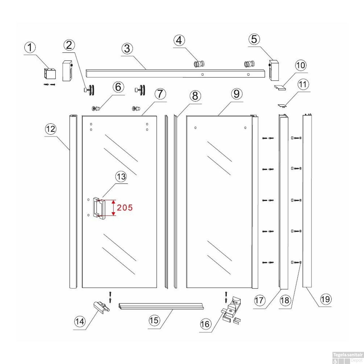 LET OP: Omdat de deur ook op een douchebak te plaatsen is zijn de afmetingen 2 a 3 cm kleiner als aangegeven op de specificaties