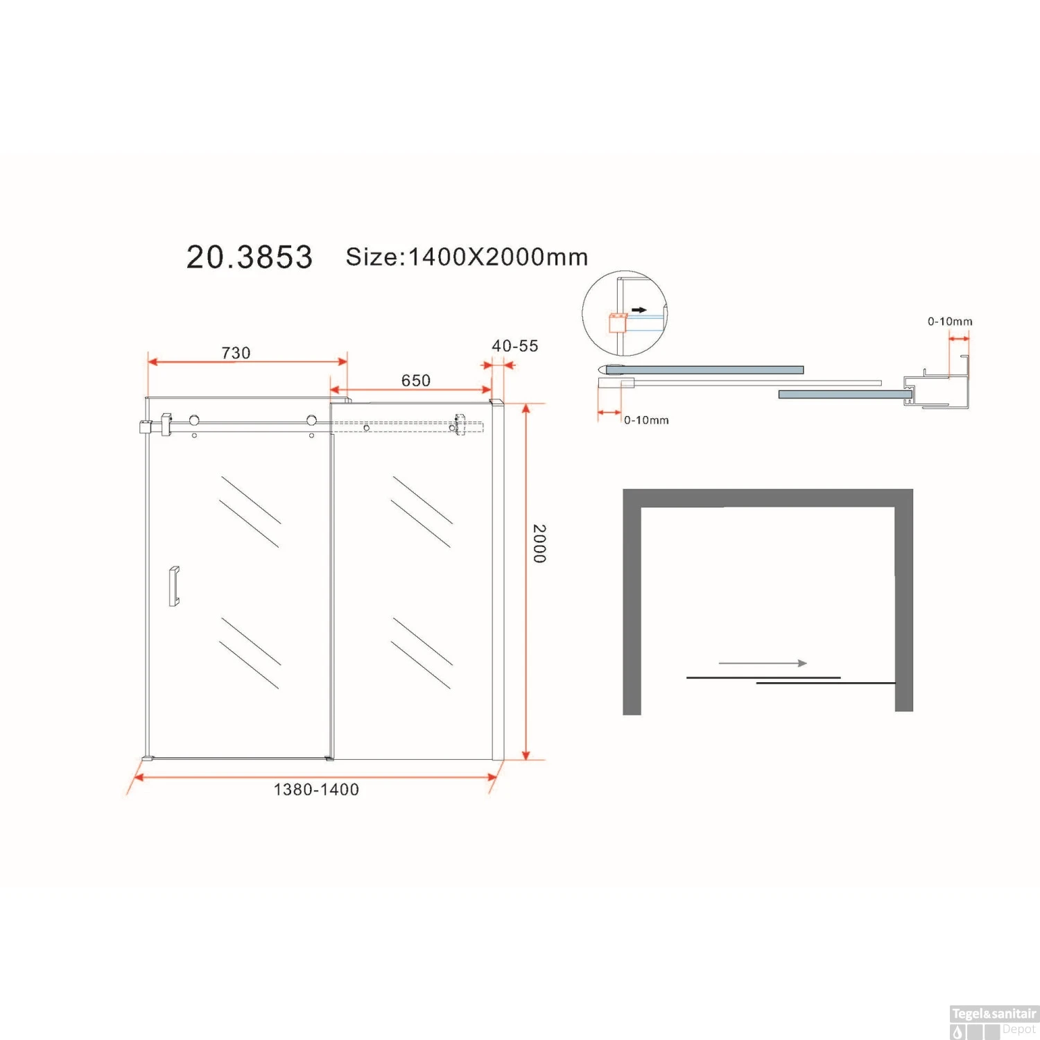 Specificaties BWS 2 Delige Nis Schuifdeur 140×200 cm 8 mm NANO Coating: