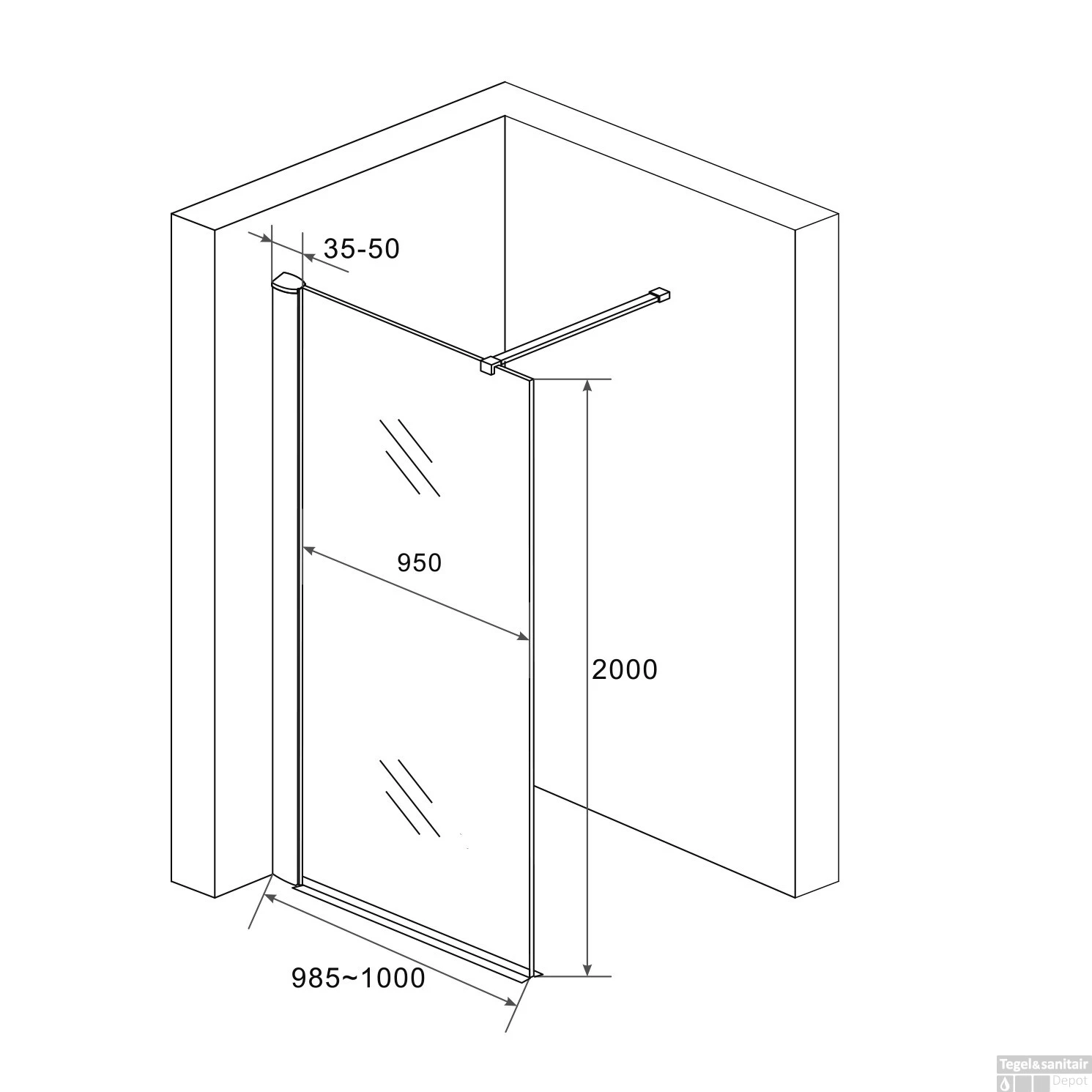 Specificaties Inloopdouche Boss & Wessing Rookglas 100x200cm 8mm Nano coating: