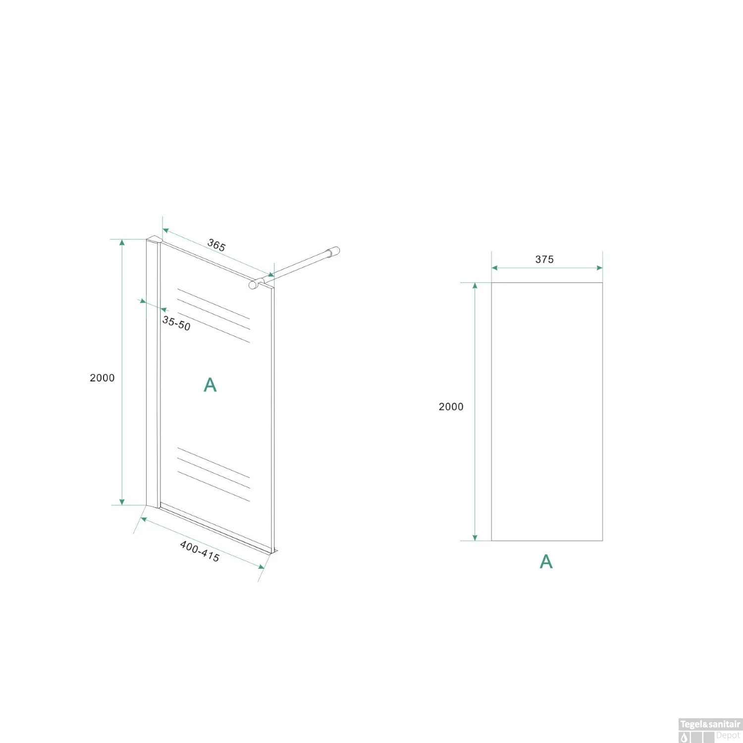 Specificaties BWS Eco Zijwand met Muurprofiel 40x200cm NANO coating 8mm: