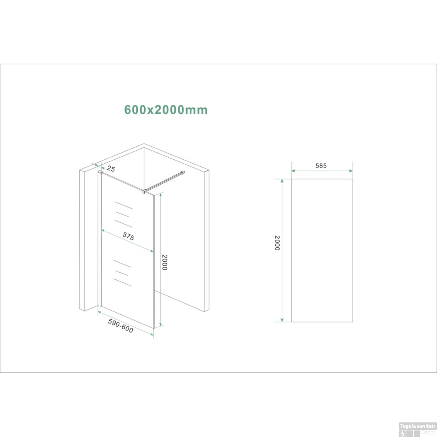 BWS Inloopdouche Pro Line Helderglas 60×200 8mm Nano Coating Chroom Profiel en Stang