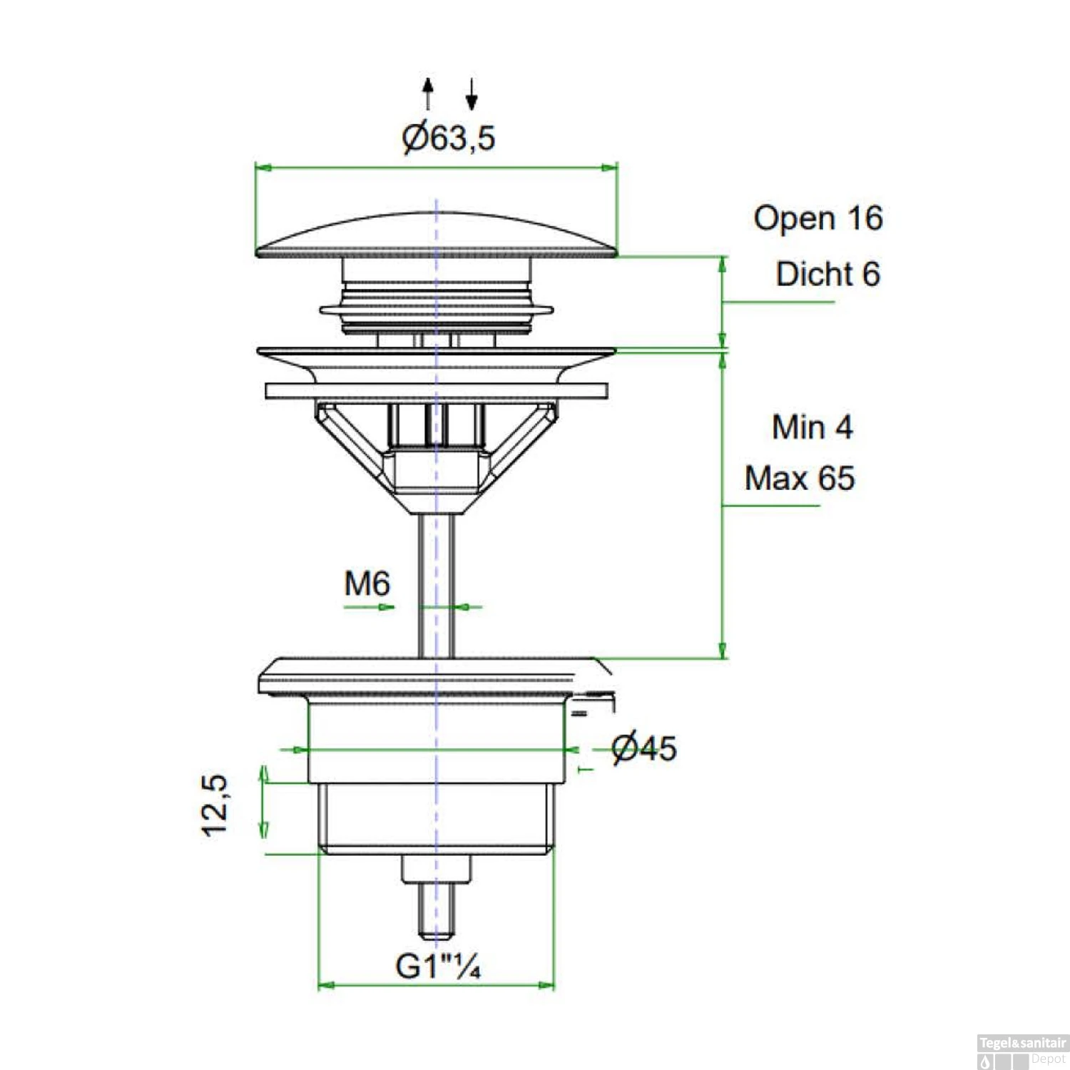 Het is een Clickplug. Dat houdt in dat u hem alleen maar hoeft in te drukken om ervoor te zorgen dat water niet door kan lopen. De plug heeft een diameter van 6.35 cm en is in de kleur Chroom.