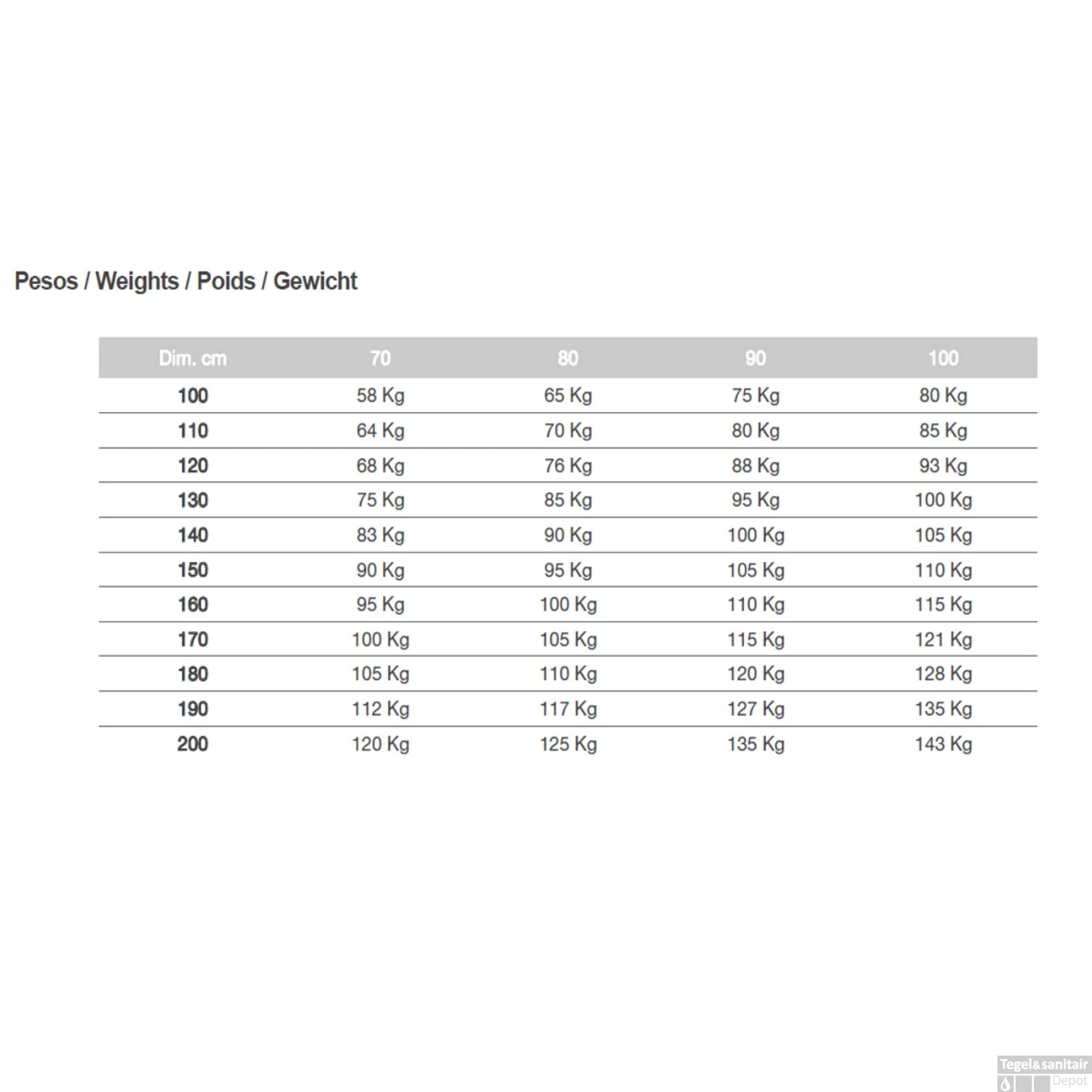 - De locatie van de afvoer verschilt per afmeting. (zie technische tekening)