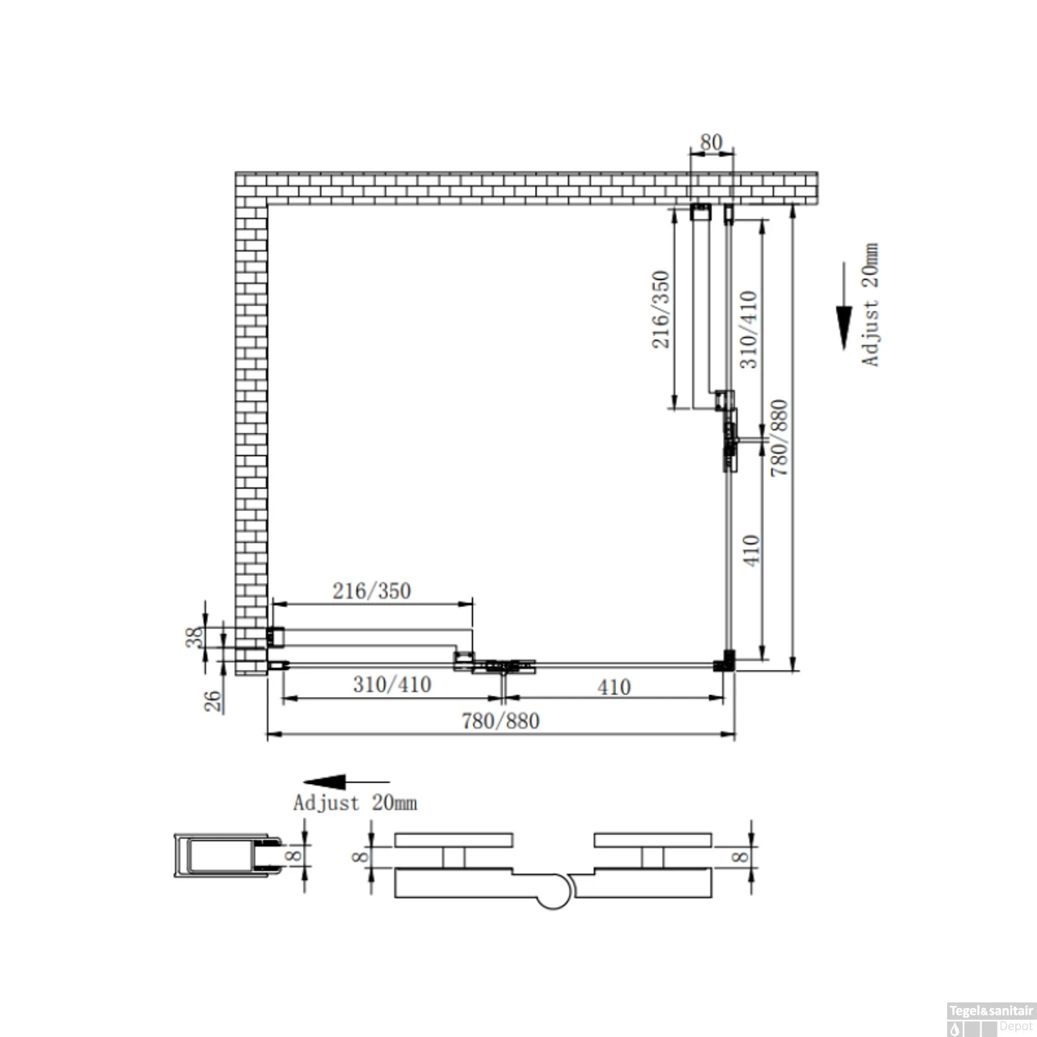 Douchecabine Boss & Wessing Double Hoekinstap Vierkant 80x80x200cm 8mm