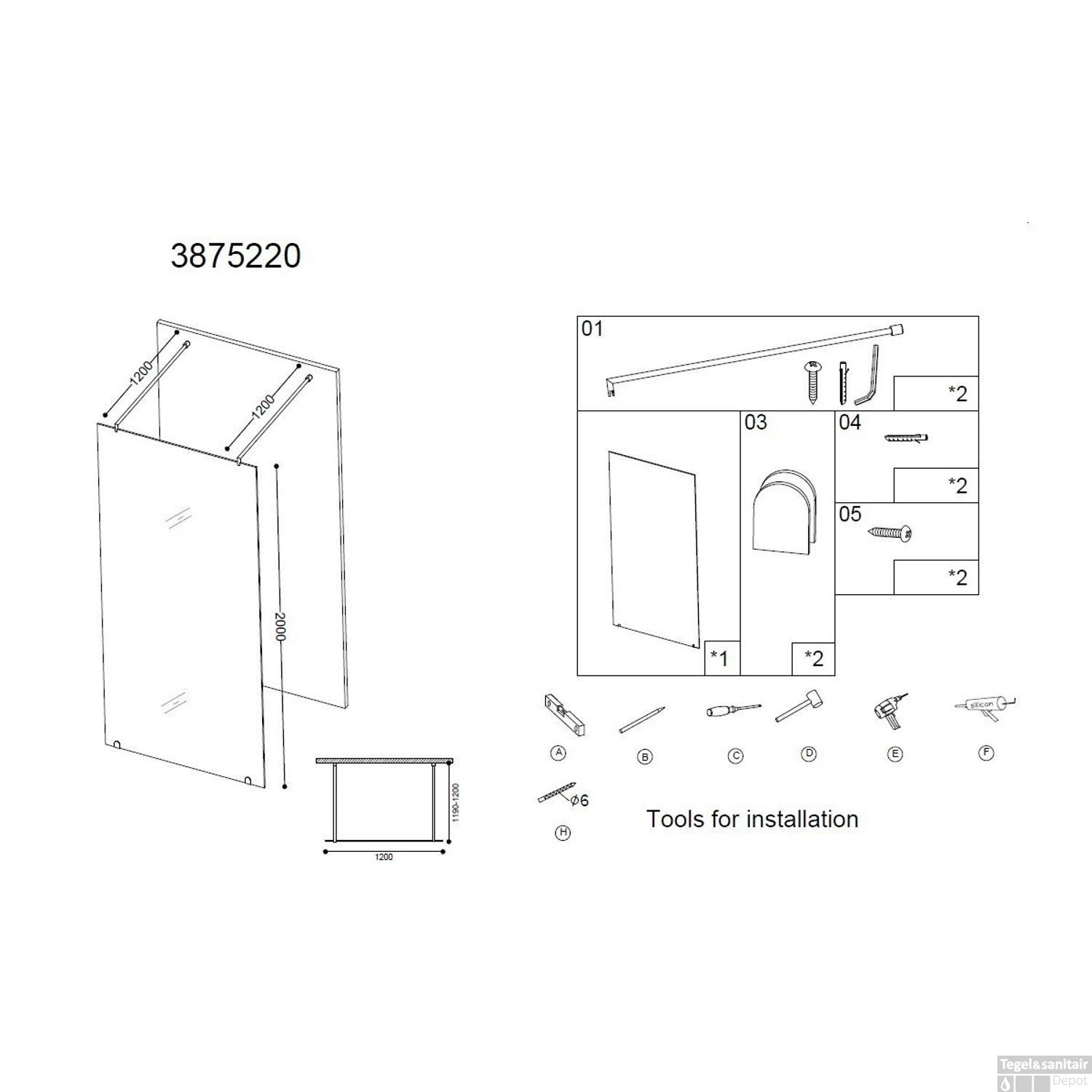 • BWS Apollo Vrijstaand Douchewand 120x200cm 10mm NANO Coating -Badkamerwinkel bws apollo vrijstaand douchewand 120x200cm 10mm nano coating shop