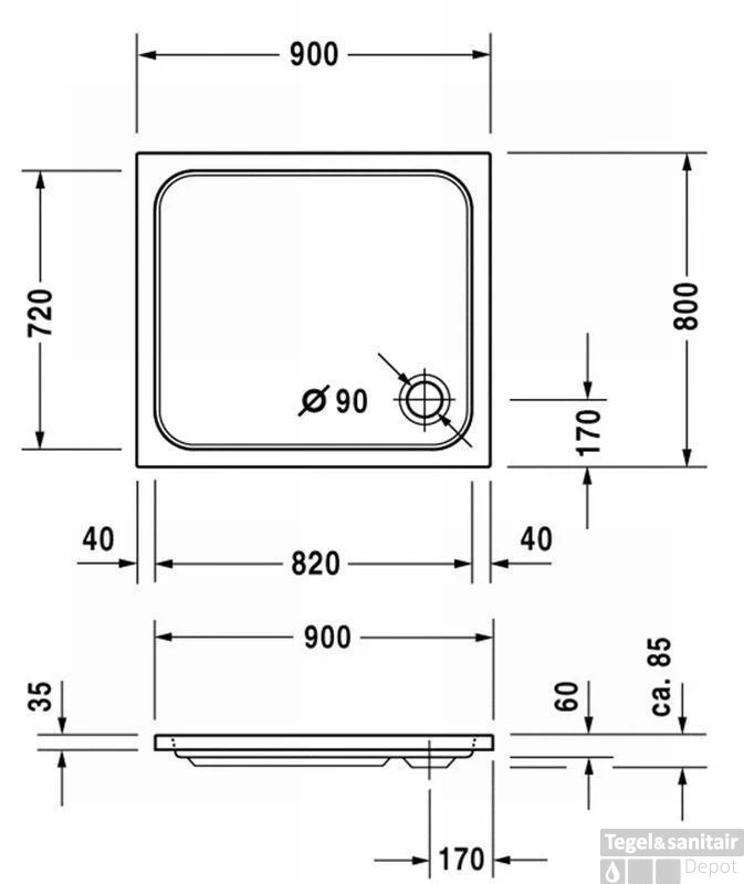 Douchebak 90x80x8,5 cm.
