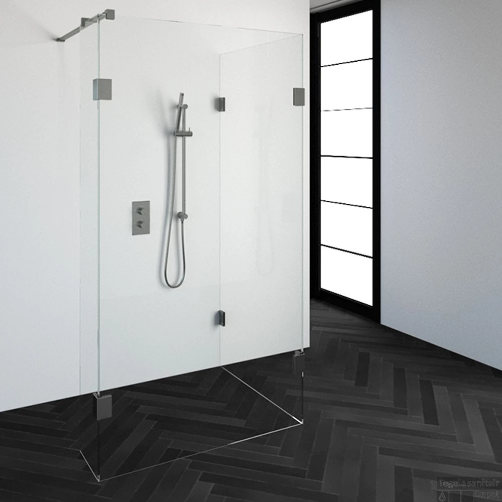 Deze complete inloopdouche bestaat uit twee inloopwanden en en een zijwand met RVS beslag. Inclusief glasbehandeling. De hoogte van de inloopdouche is 200 cm. Hij is 108,3 cm breed en 87,7 cm diep. Deze inloopdouche straalt luxe uit door zijn design en kleur.