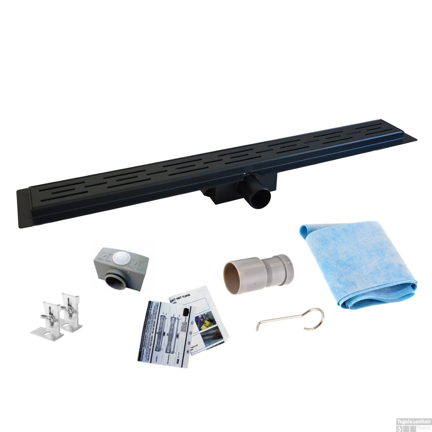 Mat Zwarte RVS Douchegoot Flens met Uitneembaar Sifon 100x7cm 6,7cm Diep MAT ZWART ROOSTER