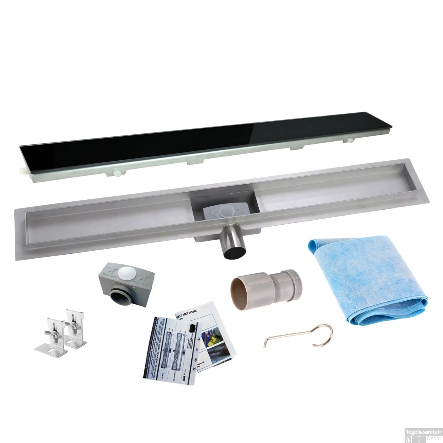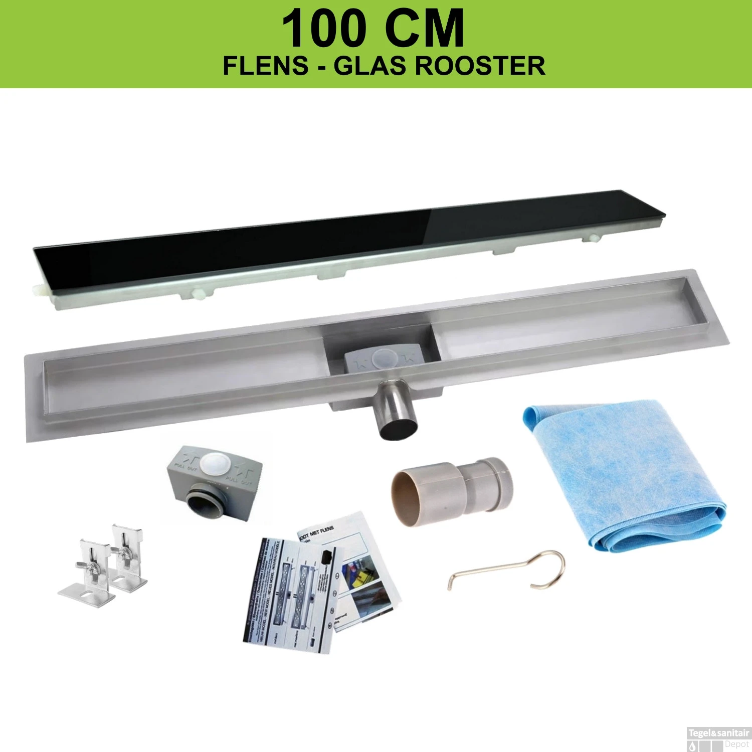 RVS Douchegoot flens met uitneembaar sifon 100x7cm 6,7cm diep GLAS ROOSTER