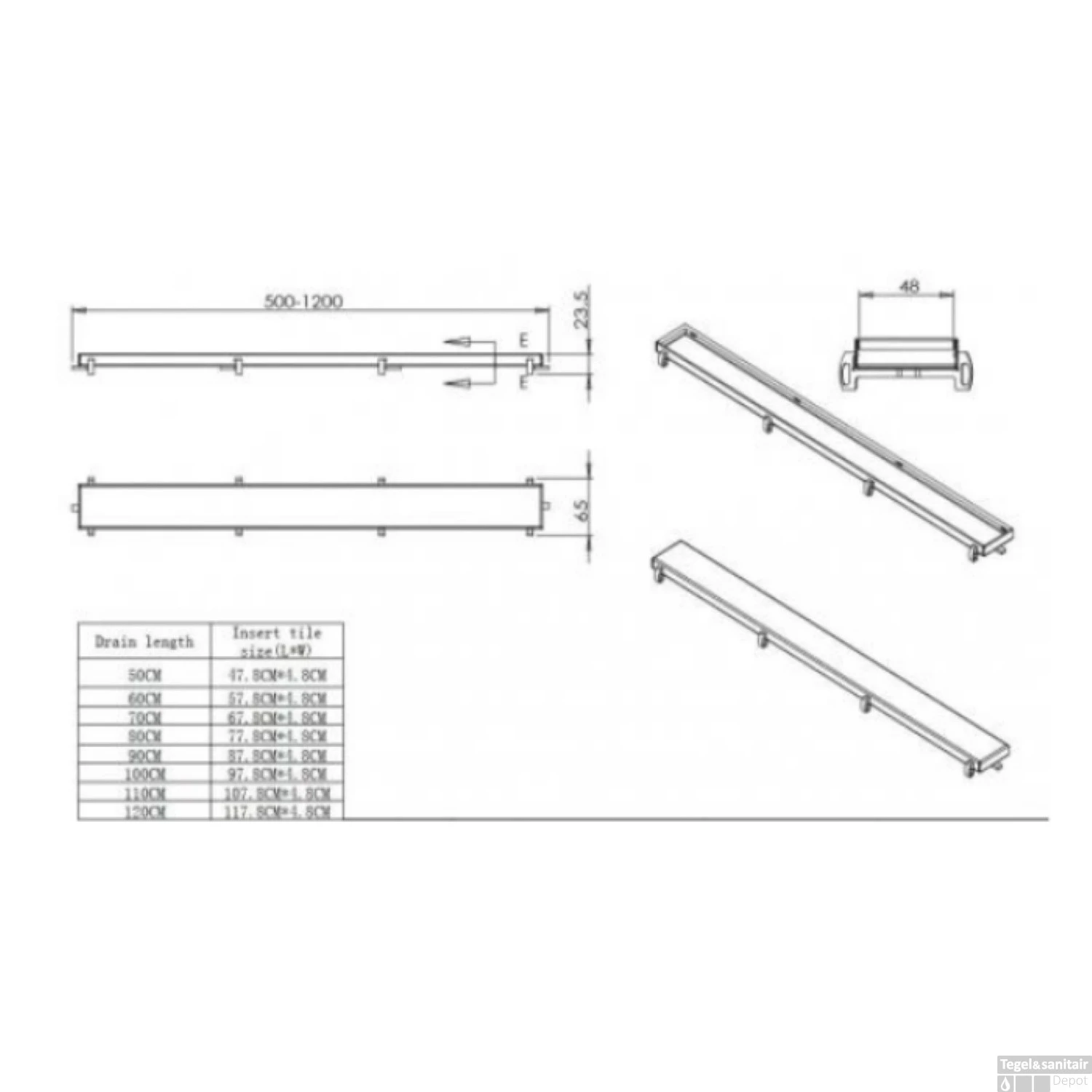 Specificaties RVS Tegelrooster t.b.v. Wiesbaden Douchegoot 60×7 cm: