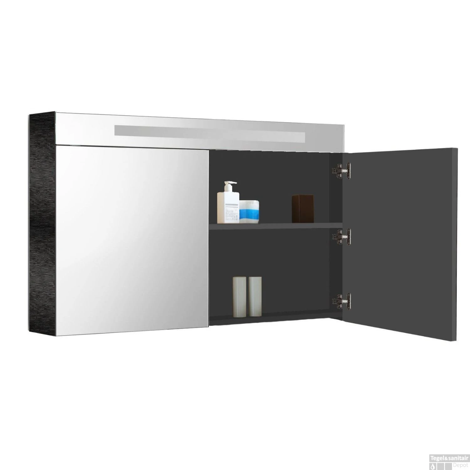 Spiegelkast Sanilux Deluxe 120x70x16cm met TL verlichting en stopcontact Zwart Wenge